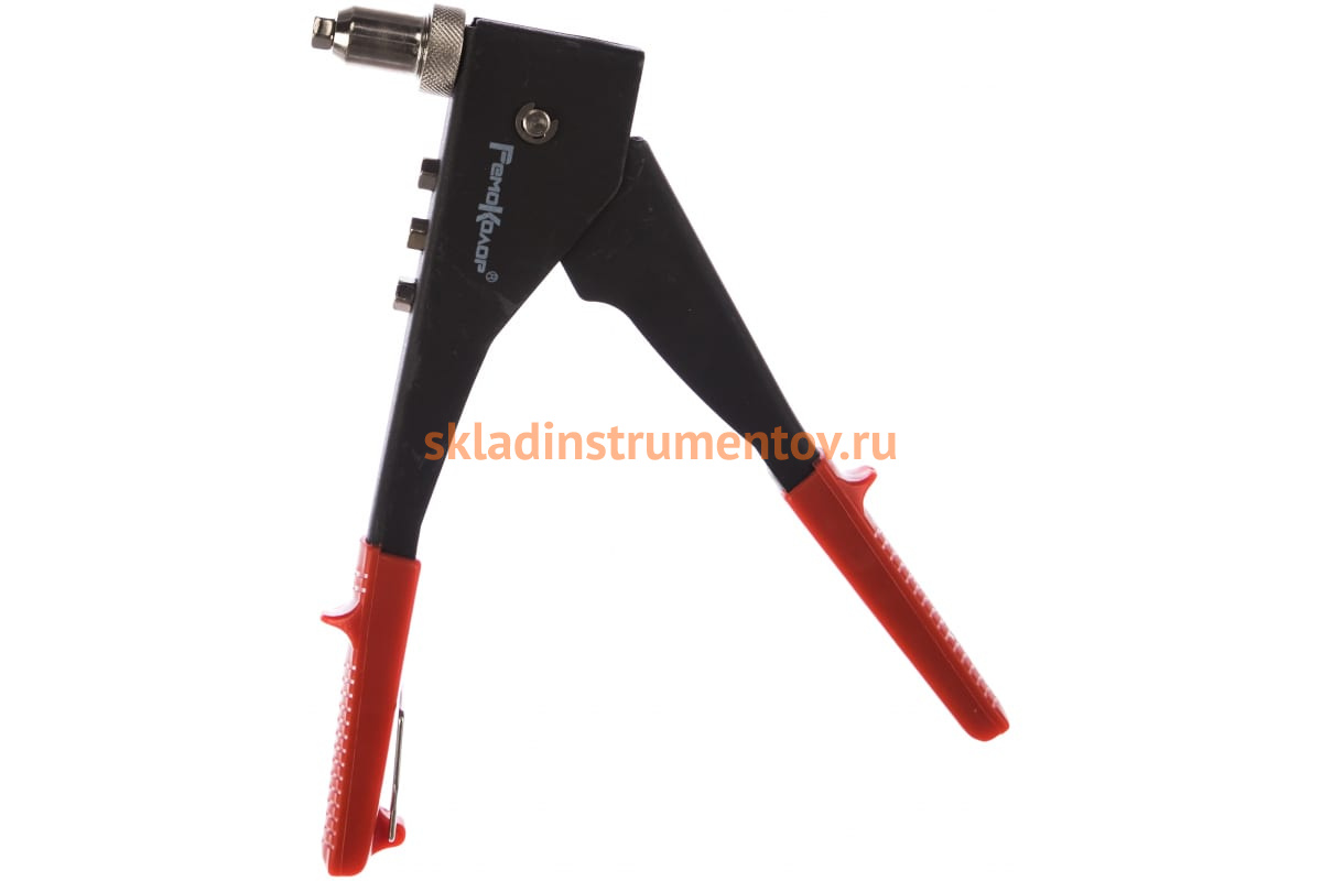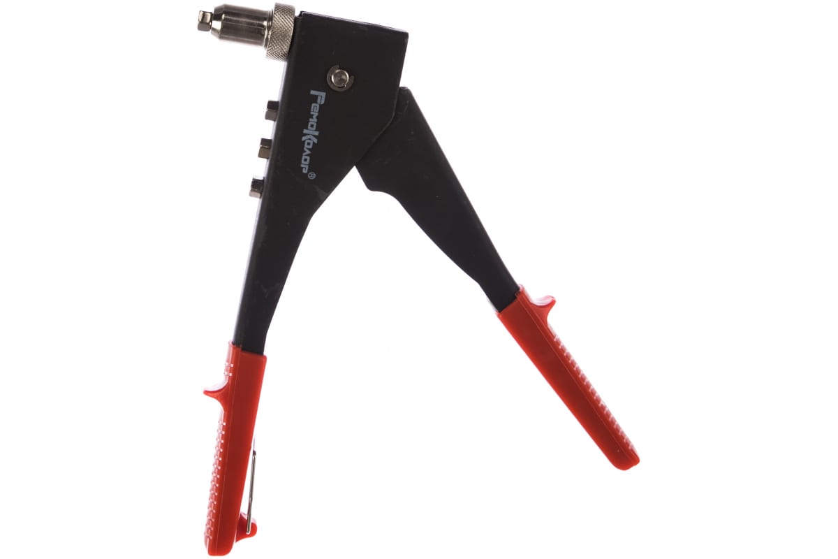 Механический заклёпочник, поворотная головка 0-90 250мм РемоКолор 26-0-002, позволяющий проводить работы под углом в 90 градусов. В своем комплекте поставляется с четырьмя насадками. Полностью подходит для клепания в домашних условиях.