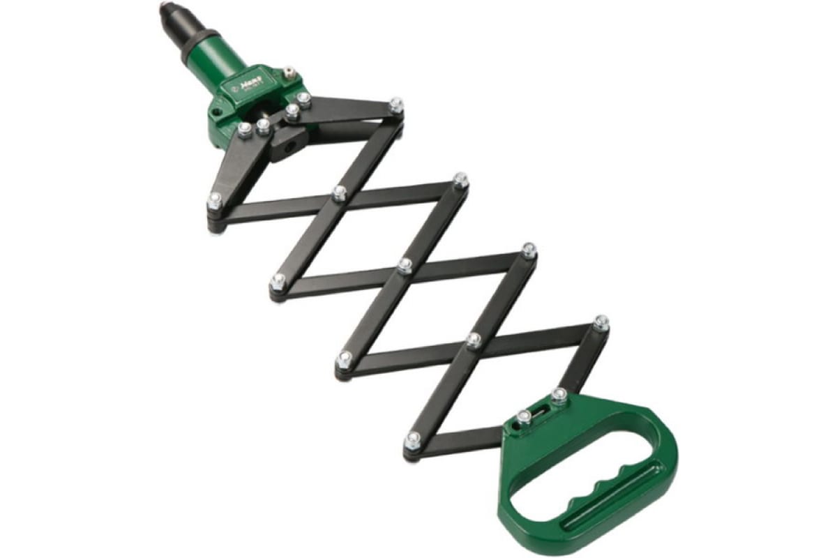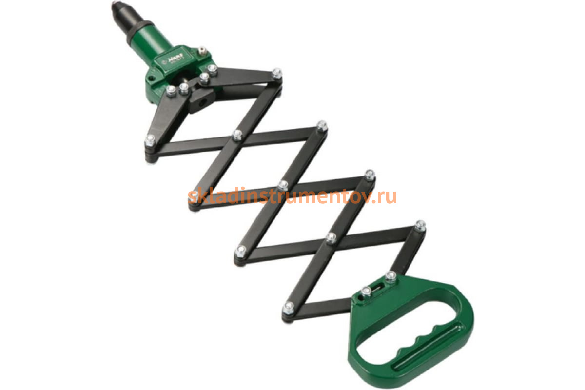 Кулисный промышленный заклепочник Hans 1973 служит для соединения листового материала. Инструмент с рычажным механизмом снижает прикладываемое в работе усилие. Конструкция выполнена из прочного и надежного материала. Заклепочник оснащен удобной рукояткой.