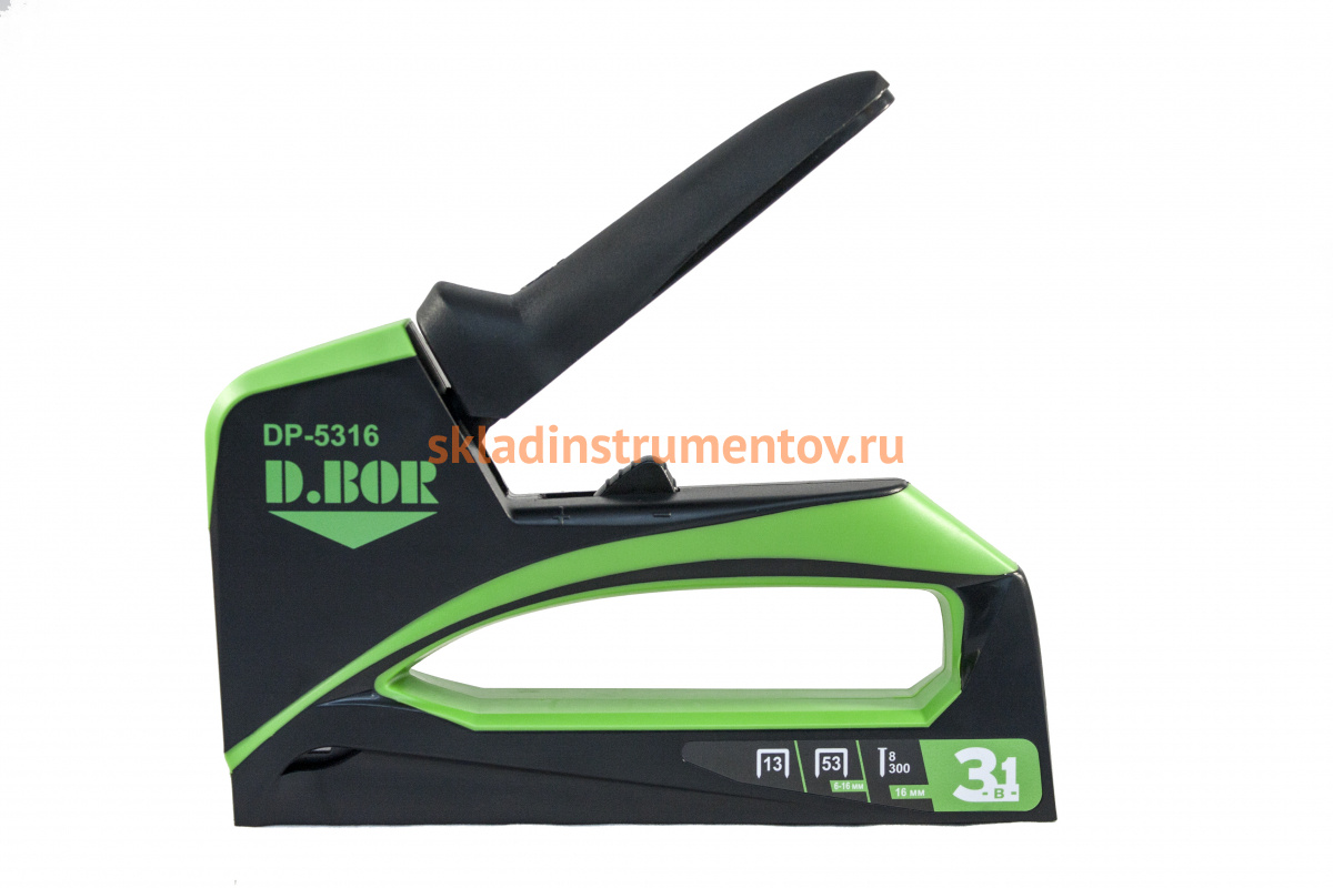 Ручной степлер D.BOR Plastic Maxi DP 5316 П 53, П 13 6-16 мм, Т 8-300 16 мм DP-5316 предназначен для соединения между собой различных деталей и листов. Корпус инструмента выполнен из прочной и долговечной стали. Отличается износостойкостью, имеет антикоррозийные свойства.