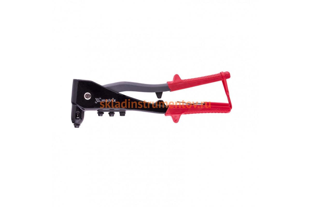 Заклепочник литой, 260 мм, с набором заклепок, заклепки 2,4-3,2-4,0-4,8 мм MATRIX 40552 предназначен для скрепления металлических листов с помощью вытяжных заклепок. В комплект входят заклепки и насадки для них. Специальный зажим создает надежную фиксацию вытяжной шпильки.