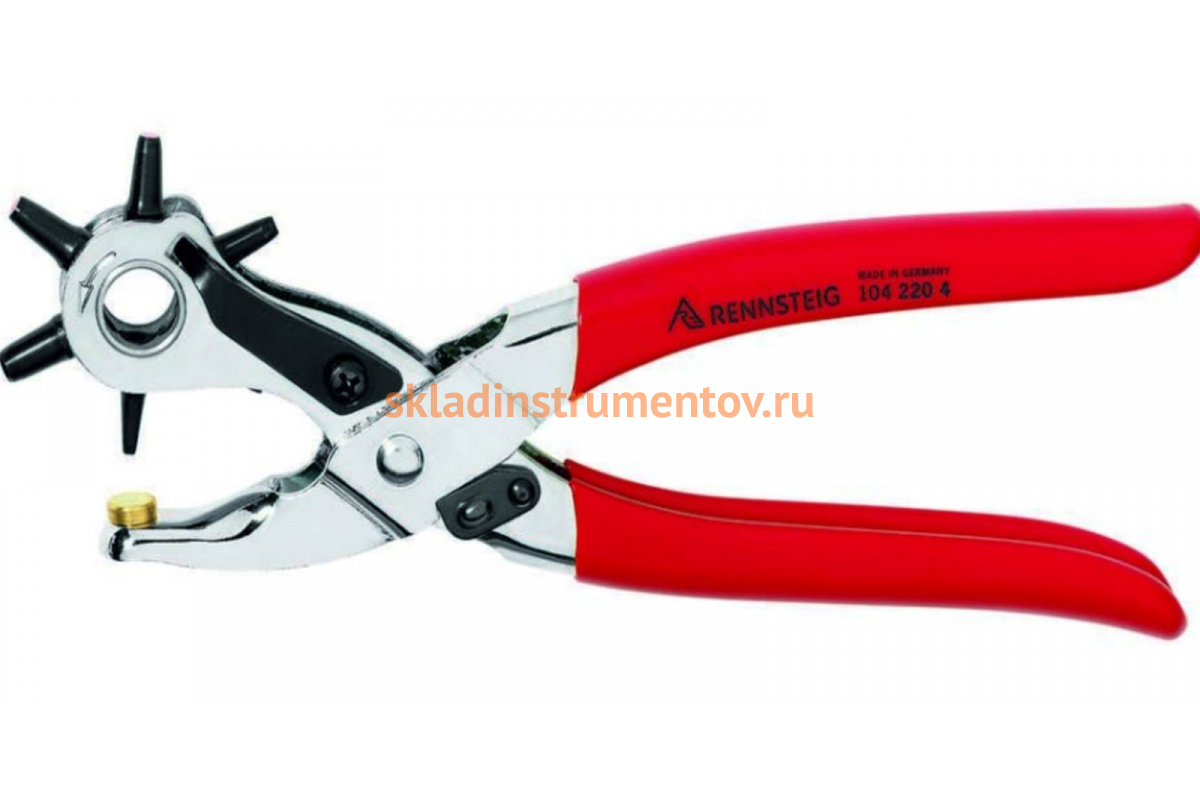 Просечные клещи с револьверной головкой Rennsteig никелированные RE-1042204 предназначены для получения отверстий в бумаге, коже, тканях, пластмассе.