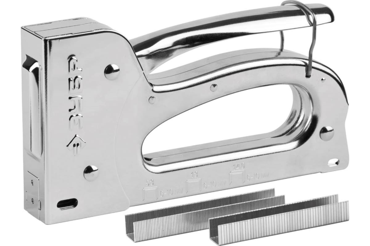 Стальной степлер ЗУБР Универсал-10 4-в-1: 53, 140, 53F, 13, 31525 является ручным инструментом, предназначенным для крепления тканых материалов к поверхностям из дерева, пластика и ДСП. Он позволяет работать с несколькими типами скоб и гвоздей. Корпус и рабочие части пистолета изготовлены из закаленной стали, что обеспечивает долговечность и надежность в эксплуатации. Благодаря резиновой вставке снижена отдача при работе.