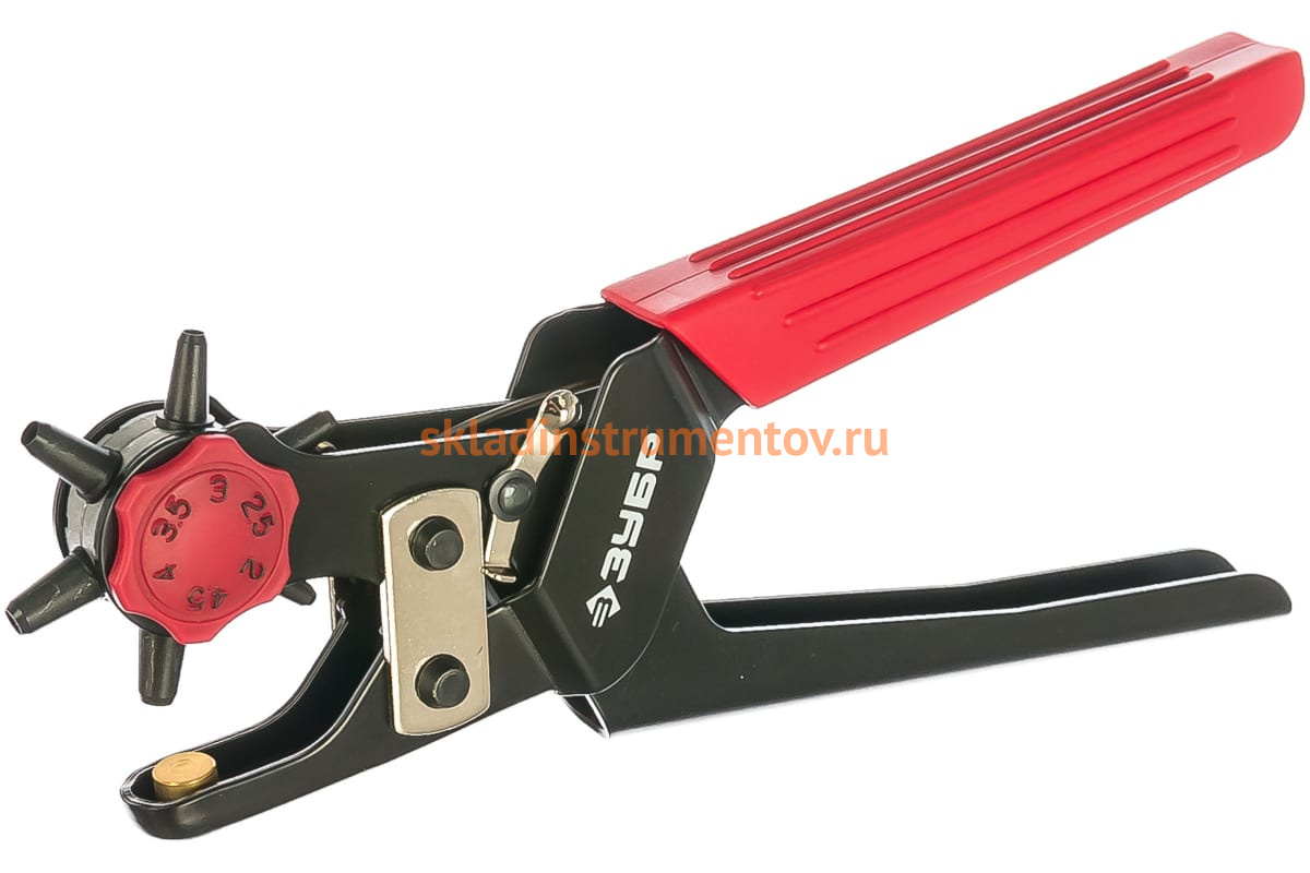 Револьверный дырокол для кожи, усиленный, 6-в-1, 2-4,5мм Зубр "МАСТЕР" 22945 также подойдет для резины, пластика и картона.