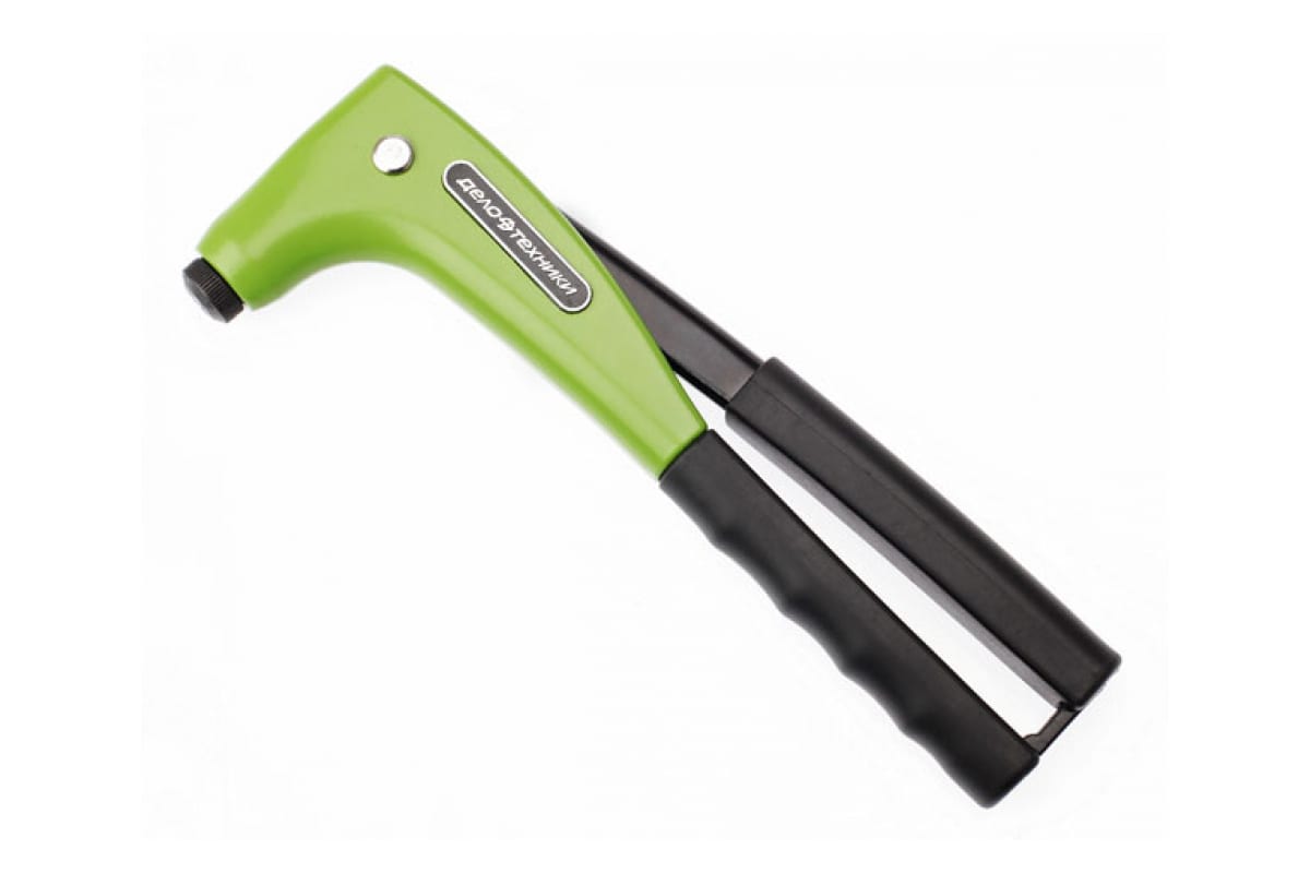 Заклепочник с универсальной насадкой, с заклепками в кейсе Дело Техники 450152 является простым в применении ручным инструментом, который пригодится при ремонтно-строительных, декоративных работах для быстрого скрепления различных материалов. Конструкция состоит из металлической рабочей части и удобных пластиковых рукояток. Для хранения заклепочник оснащен крючком, который фиксирует рукоятки в неподвижном положении.