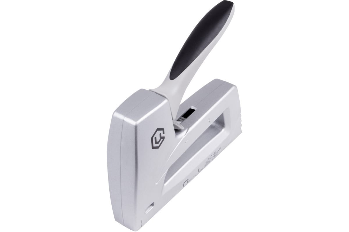 Усиленный степлер для установки сайдинга Центроинструмент 0534 - бытовой инструмент, представленный в прочном металлическом корпусе. Имеет надежный механизм подачи скоб и гвоздей. Для более эффективного выполнения работ предусмотрена возможность регулировки усилия удара. На верхней подвижной рукоятке расположена противоскользящая накладка для ладони.