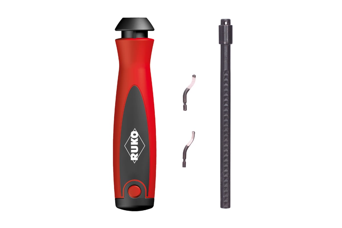 Набор фаскоснимателей Ruko Unigrat B 107003 представляет собой специализированный инструмент для удаления заусенцев с отверстий и кромок. Благодаря различным лезвиям есть возможность обработки отверстий с разных сторон. Лезвие само подстраивается к контуру. Можно удалять заусенцы из отверстий снаружи, внутри или с обеих сторон.