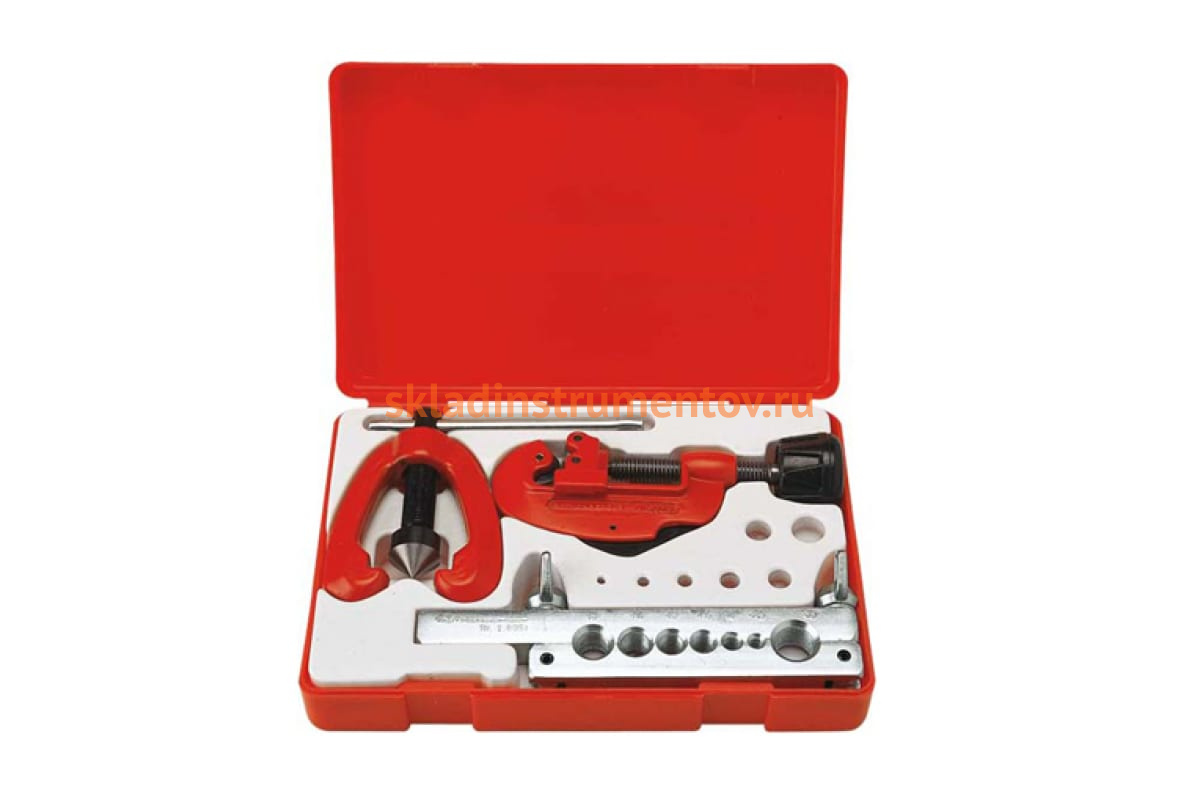 Набор EB для развальцовки SUPER-EGO 491050000 подходит для изготовления точных бортиков под 45° на медных, латунных и алюминиевых трубах диаметром 3/16 – 5/8". Практичен и удобен в использовании, винтовые механизмы идеальны для работы в ограниченном пространстве. Изготовлен из высококачественной стали, что говорит о небольшом весе и долгом сроке службы инструмента. Особая точность развальцовки достигается за счет самоцентрирующегося зажимного механизма из кованой стали. Обеспечивается высокое качество работы: специальная резьба позволяет осуществлять пластические деформации с наименьшим усилием и не повреждать материал. В набор входит труборез.
