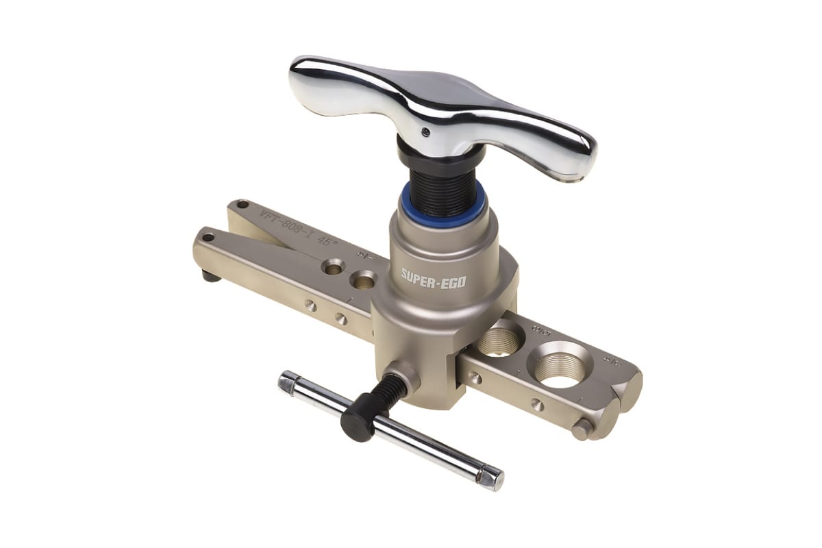 Эксцентриковый развальцовщик SUPER-EGO 1500001408 спроектирован специально для того, чтобы изготавливать простые борты под углом 45 градусов на обычных медных трубах. Благодаря своим размерам он может считаться мобильным. Развальцовщик изготовлен из качественных материалов.