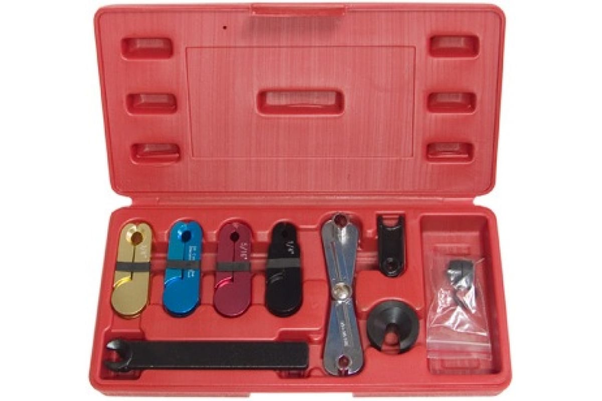 Набор для демонтажа линий (топливных, КПП), 14шт, 1/4-1/2 AIST 00-00008017 состоит из специальных приспособлений, выполненных из алюминия, которые служат для проведения операции разъединения быстроразъемных штуцеров в различных системах: топливных, охлаждения АККП и линиях кондиционирования.