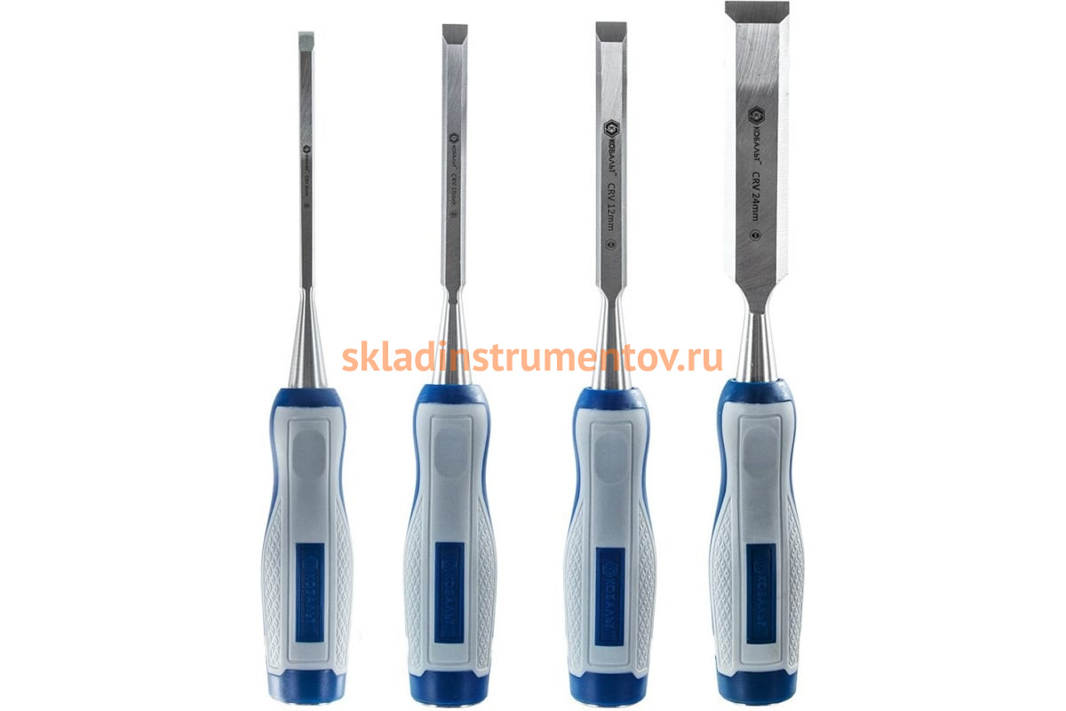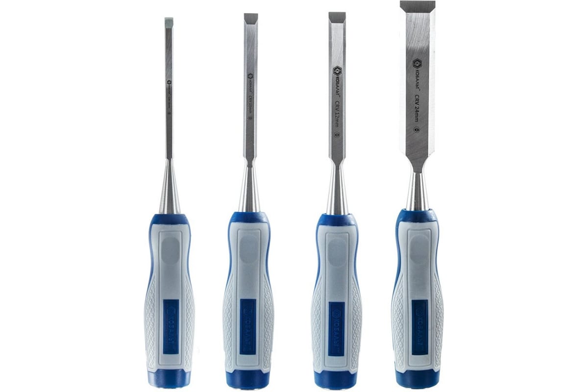 Набор плоских стамесок: 6, 12, 18, 24мм, длина 140мм, CR-V, двухкомпонентные рукоятки, 4шт КОБАЛЬТ 245-671 разработан для точной и качественной обработки заготовок из мягких материалов (древесины, пластика и пр.). В комплекте представлены инструменты самых распространенных размеров. Наличие двухкомпонентных рукояток обеспечивает уверенное удержание без риска проскальзывания в ладони пользователя.