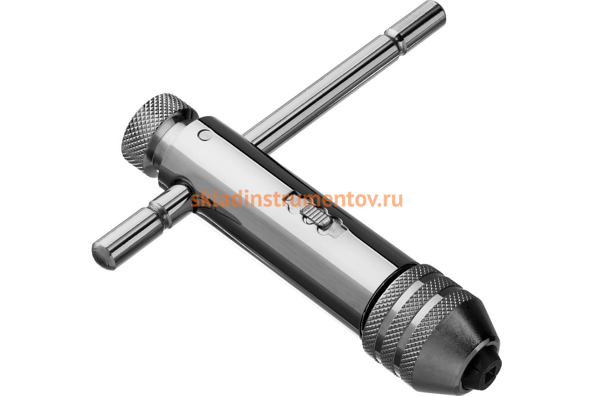 Метчикодержатель с храповым механизмом и реверсом М5-М12, 110 / 120 мм, ЗУБР 28138-110_z01 упрощает процесс нарезания резьбы за счет использования специального трещоточного механизма и Т-образной рукоятки.