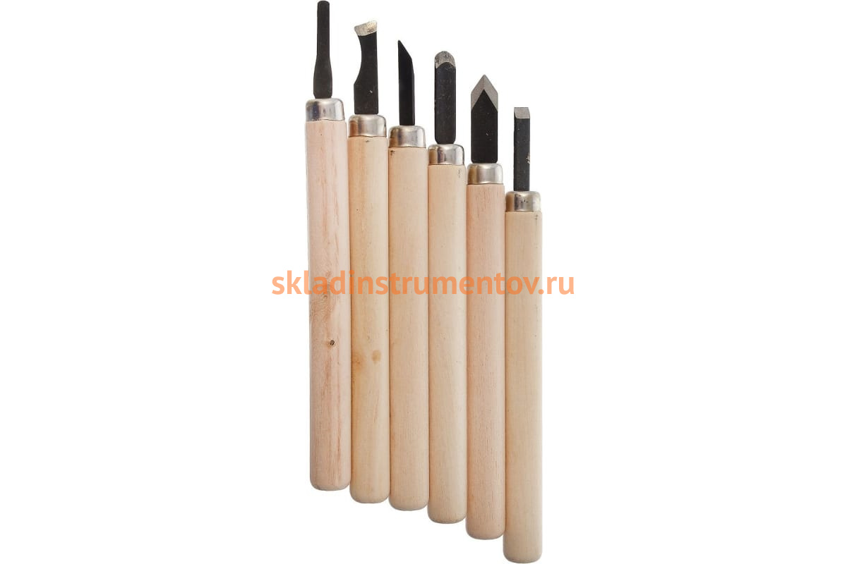 Набор резцов по дереву SPARTA 6 штук 246065 состоит из инструментов различной формы.
