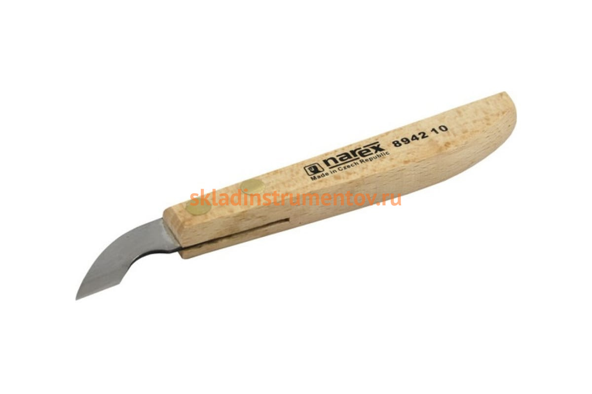 Нож по дереву, крюк NAREX Standart Line 894210 - разделочный ручной инструмент для фигурной резки по деревянным заготовкам. Изделие представляет собой сочетание высокопрочного лезвия из легированной молибден-ванадиевой стали с эргономичной ручкой из натуральной древесины бука с масленым покрытием. Рабочая часть закалена до твердости 55 НRс. Вес: 20 гр. Длина лезвия: 29 мм. Общая длина ножа: 133 мм.