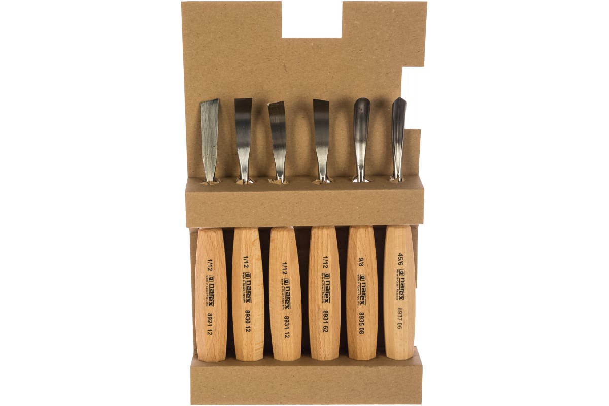 Набор из 6 резцов в картонной коробке NAREX Standart 894710 разработан для резьбы по дереву и в профессиональных, и в любительских целях. Инструменты отличаются высоким качеством и продолжительным сроком службы. Лезвия резцов изготовлены из прочной хромованадиевой стали и подвержены термической обработке до твердости 55 HRc. Рукоятки изделий имеют эргономичную форму, в поперечном сечении представляют собой восьмиугольник. Материалом для изготовления рукояток служит натуральный бук, поверхности промаслены.