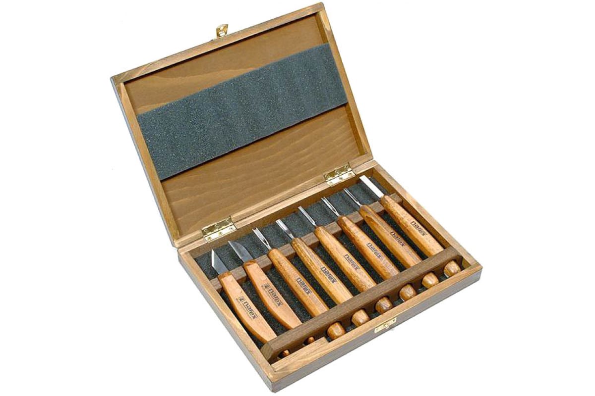 Набор резцов Narex 869010 состоит из 6 стамесок различного профиля и 2 ножей для мелкой резьбы по дереву. Лезвия стамесок изготовлены из хром-ванадиевой стали твердостью 59 HRC, что обеспечивает стойкость и долговечность инструмента. Лезвия ножей изготовлены из марганец-ванадиевой стали, твердостью 61 HRC. Ручки, имеющие восьмиугольную форму, выполнены из бука. Набор поставляется в кейсе для удобного хранения и транспортировки.