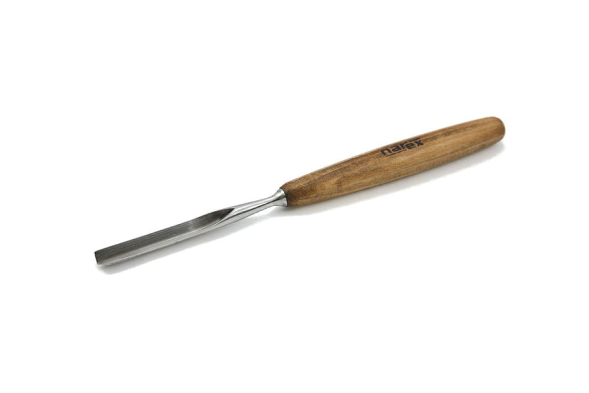 Резец по дереву NAREX PROFI острый 826908 представляет собой столярный инструмент с полотном, расположенным под углом 100°. Лезвие заточено на конце. Резец позволяет вырезать в заготовке V-образные канавки и выемки. Материал рукоятки - мореный бук. Поверхность рукоятки покрыта лаком.