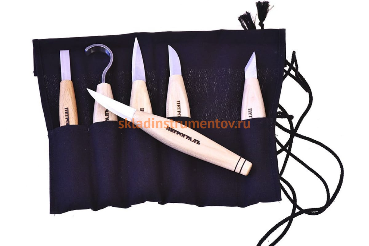 Резчицкий набор N2, 5 ножей + 1 стамеска Петроградъ М00014186 подойдет для работы с любыми изделиями из древесины.
