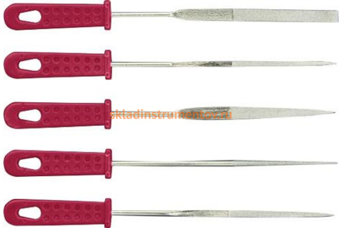 Алмазные широкие надфили КУРС 170 мм, 5 шт. 42159 выполнены из прочной инструментальной стали, гарантируют надежность и долгий срок эксплуатации. Покрыты алмазным напылением, имеют удобные пластиковые ручки. В набор входят универсальные формы: плоский, квадратный, трехгранный, круглый, полукруглый.
