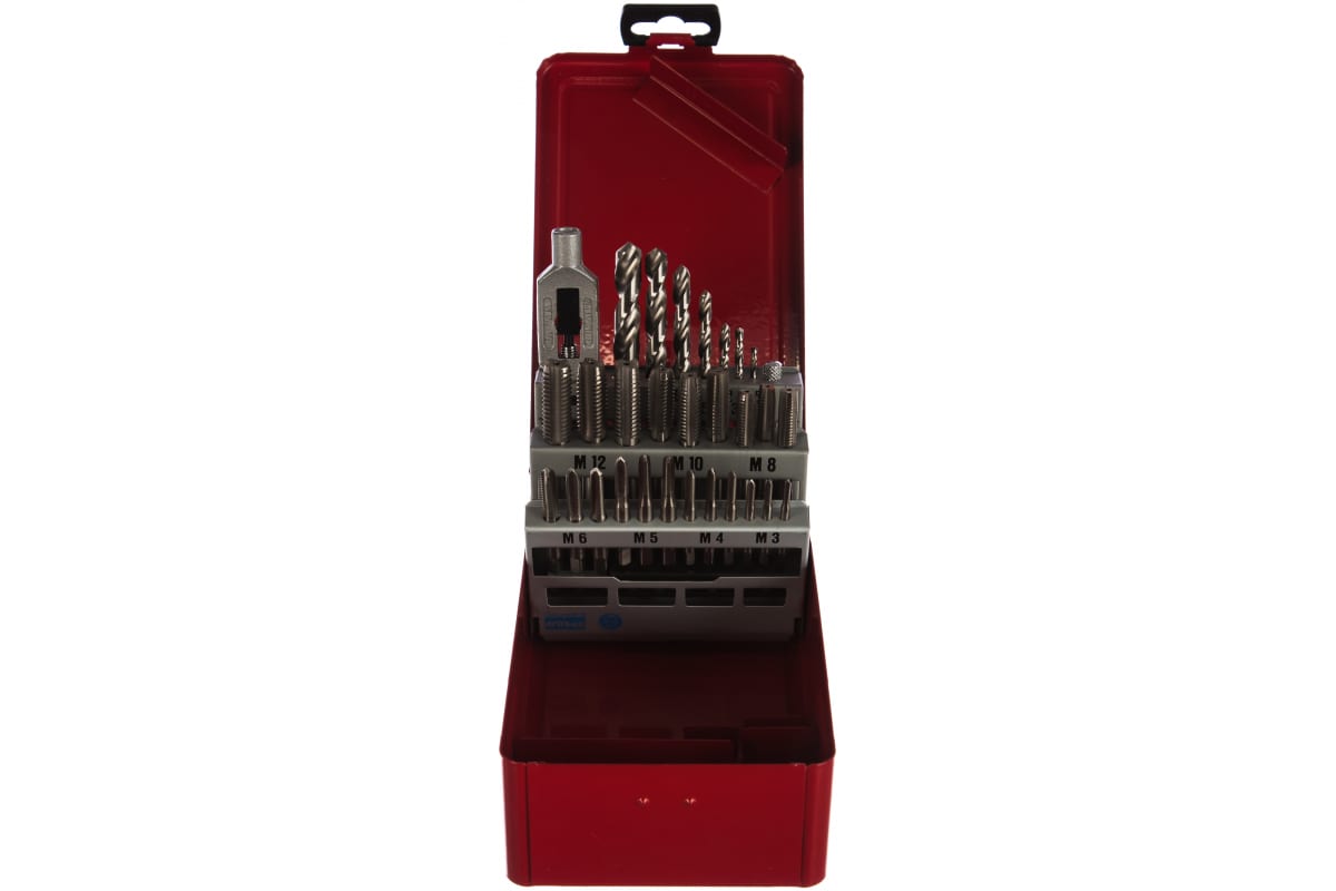 Набор ручных метчиков HSS M3-M12+вороток+сверла, 29шт RUKO 245003 состоит из большого количества приспособлений для сверления отверстий и нарезания резьбы в деталях из углеродистой и низколегированной стали с прочностью до 800 n/mm². Угол профиля резьбы: 60°. Метрическая резьба: Din ISO 13. Хвостовик - четырехгранный Din 10. Допуск на резьбу для метрической и метрической мелкой резьбы согласно DIn ISO 13 внутренней резьбы.