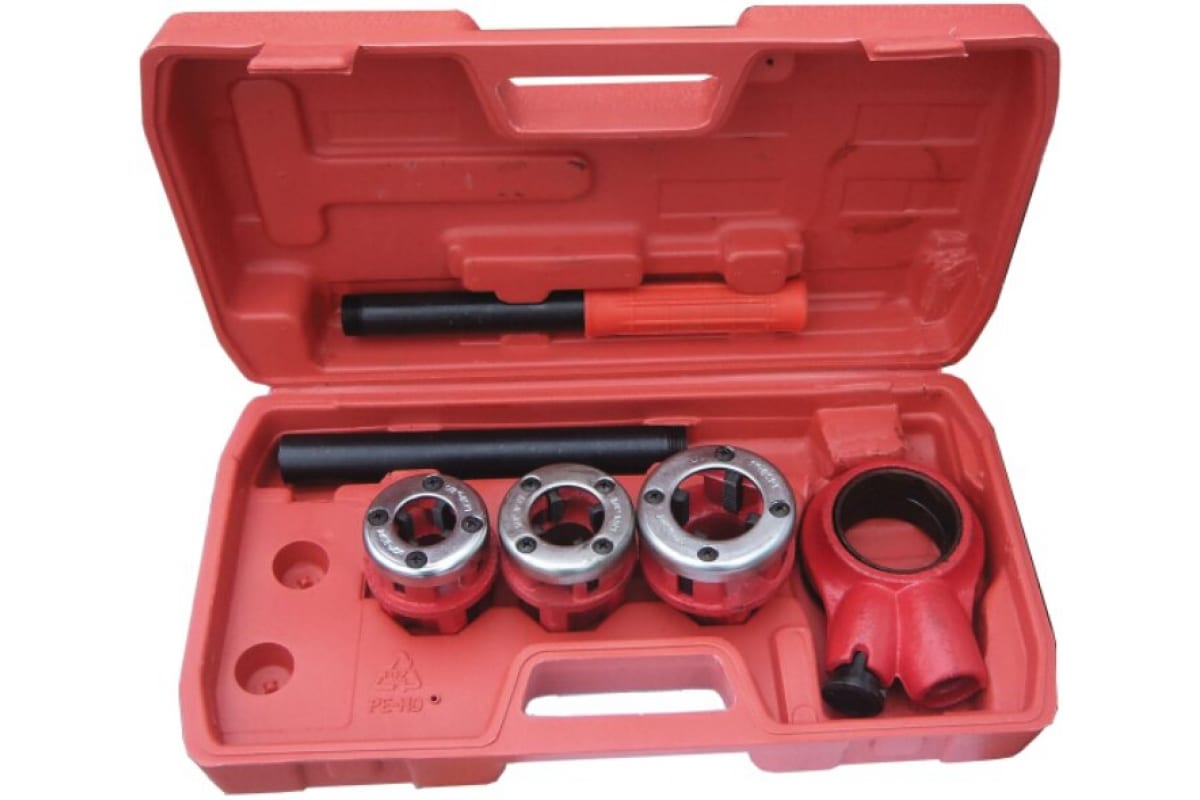 Набор для нарезания трубной резьбы, пластмассовый кейс РемоКолор 43-7-000 предназначен для нарезки наружной дюймовой цилиндрической трубной резьбы (тип G) на металлических трубах. Резцы клуппов изготовлены из инструментальной легированной стали 9ХС. В комплекте имеется трещетка и удобная рукоятка.