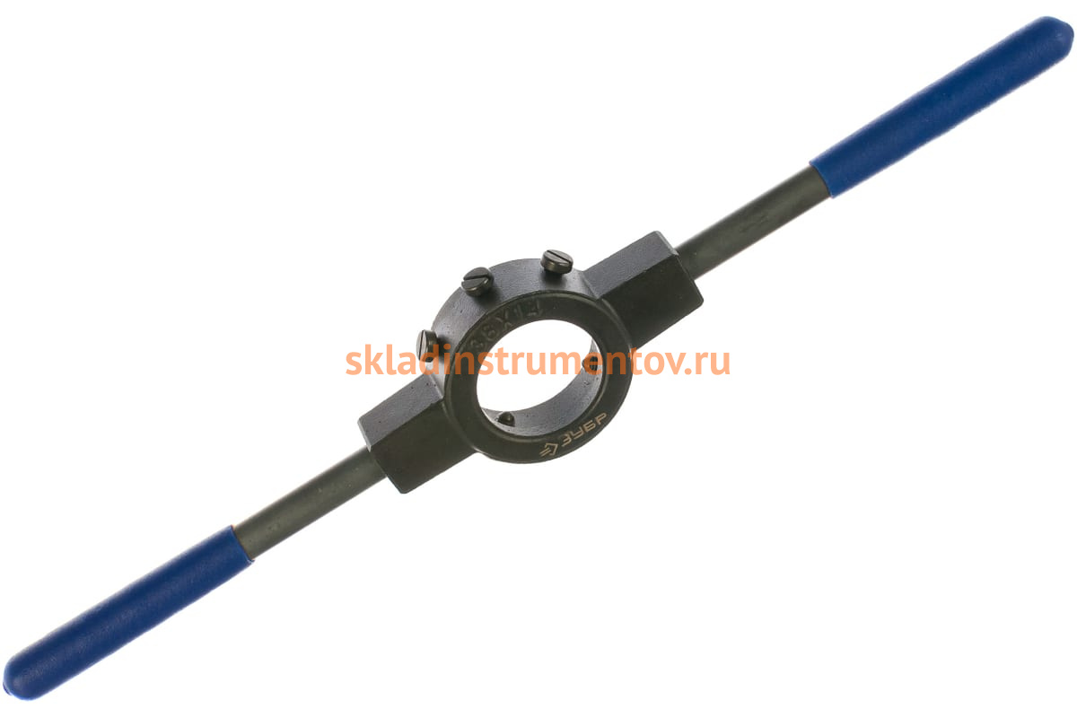 Плашкодержатель со стопорными винтами ЗУБР "ПРОФЕССИОНАЛ" 28150-38 выполнен из прочной стали с парооксидированием для защиты от коррозии.