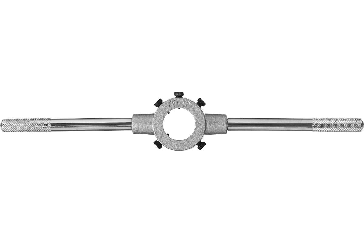 Плашкодержатель 30х11мм для М10 Зубр Мастер L - 275 мм 28141-30_z01 выполнен из цинкоалюминиевого сплава. Инструмент удобен в использовании за счет надежного удержания плашек и более качественного нарезания наружной резьбы.