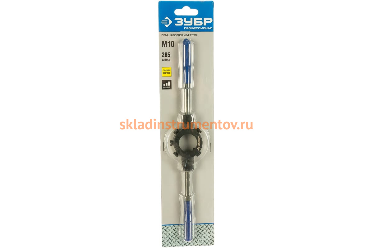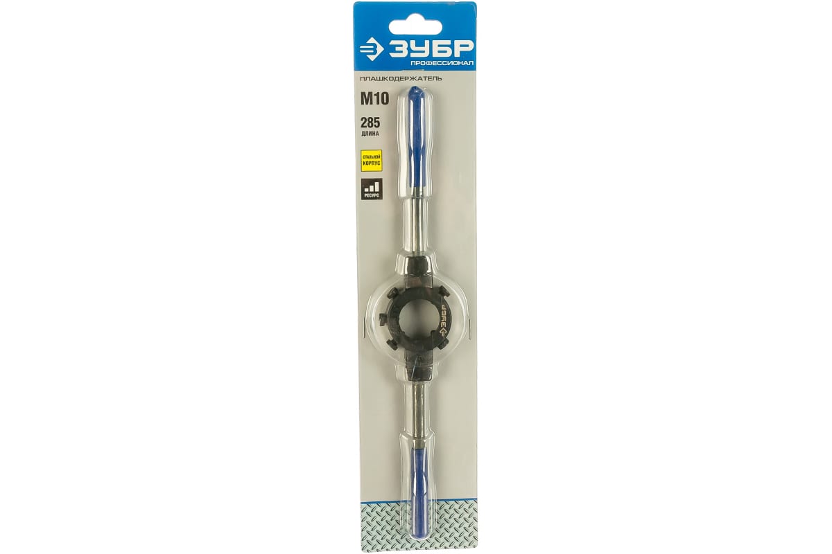 Плашкодержатель со стопорными винтами ЗУБР "ПРОФЕССИОНАЛ" 28150-30 выполнен из прочной стали с парооксидированием для защиты от коррозии.