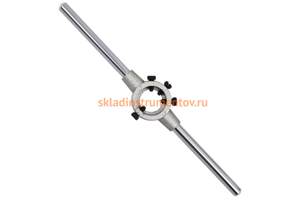 Вороток для плашек (М10мм, d 30, G 3/8 - 7/16 дюйма) GRIFF 014069 используется для удержания режущего инструмента в процессе работы. При помощи стопорных винтов плашка надежно фиксируется в держателе. Длина рукояток обеспечивает простое вращение.