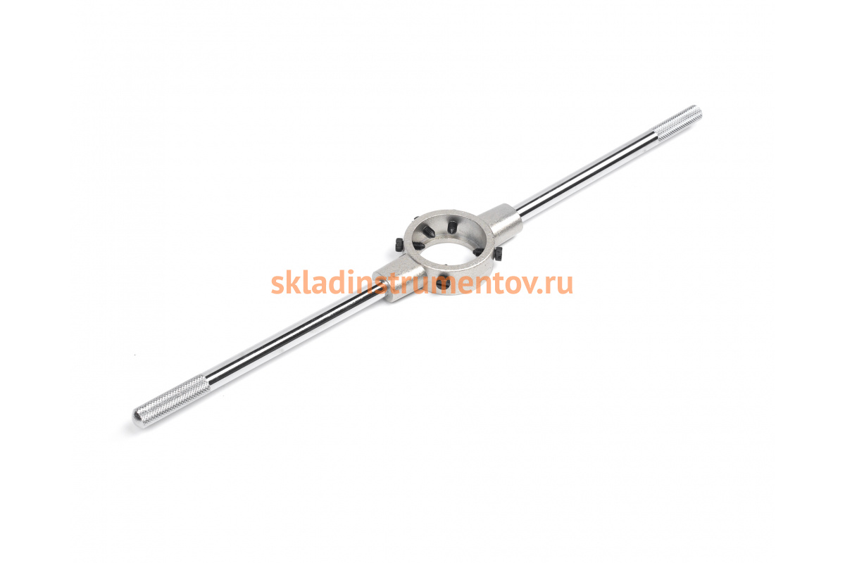 Плашкодержатель HORTZ 45х18 М16-М21; G, K, RС 3/8; G, K 1/2; K 5/8 351980 надежно удерживает инструмент для нарезания наружной резьбы. Благодаря рифленым рукояткам вращать держатель проще.