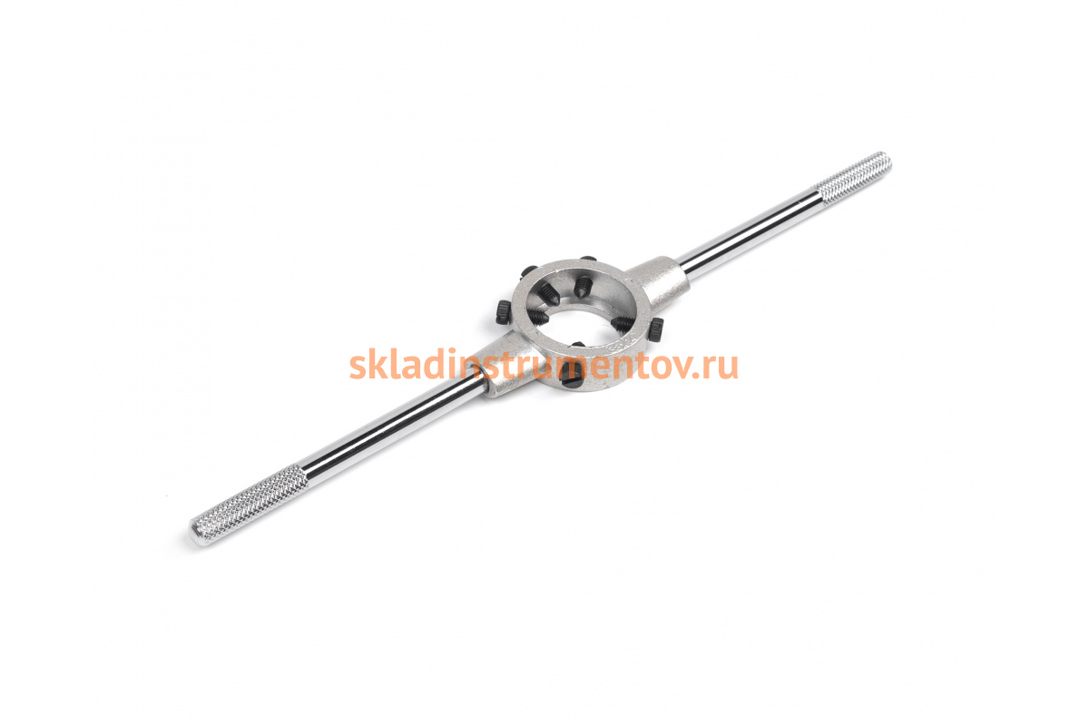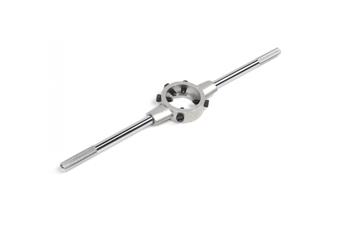 Плашкодержатель HORTZ 38х14 М12-М15; G, K, RС 1/4 351979 надежно удерживает инструмент для нарезания наружной резьбы. Благодаря рифленым рукояткам вращать держатель проще.