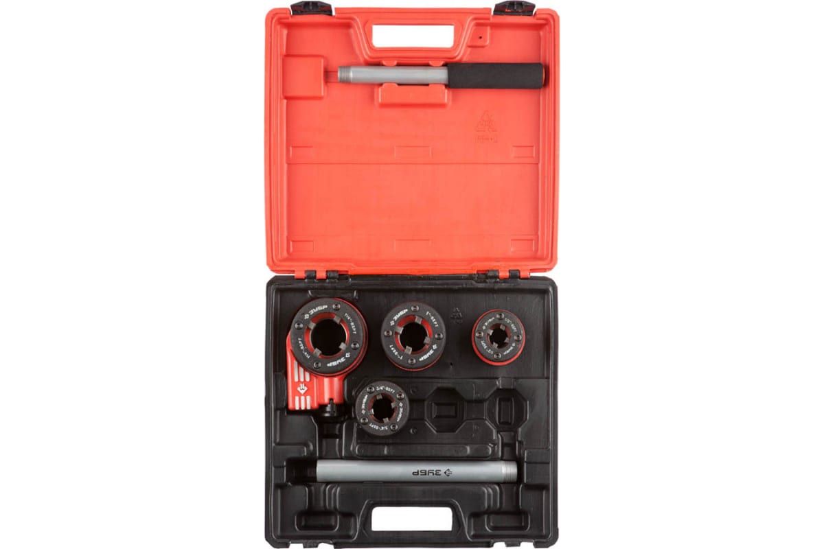 Резьбонарезной набор №4 ЗУБР ЭКСПЕРТ 28270-H4 - комплект инструментов для металлообработки. Применяется для резьбонарезания труб до 1 1/4". Трещотка снабжена двусоставной разборной ручкой, поэтому она не занимает много места при хранении. Набор укомплектован пластиковым боксом для удобства эксплуатации и транспортировки.