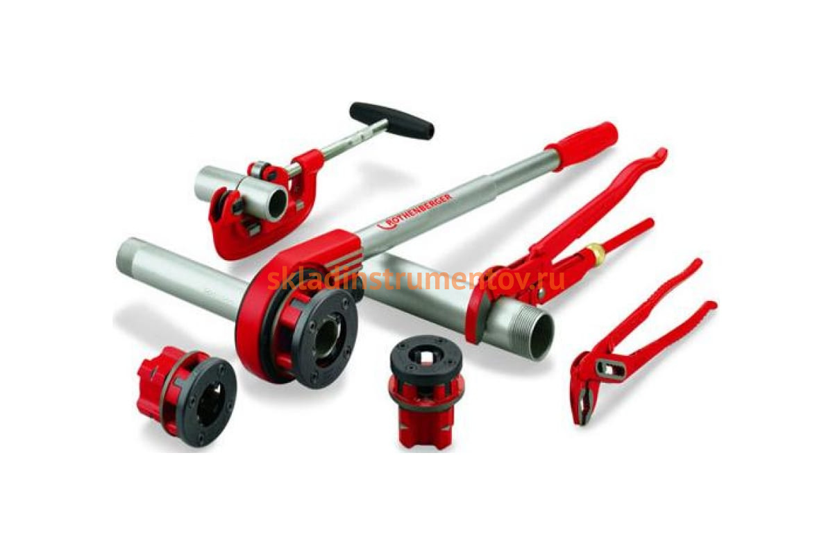 Ручной набор сантехника Rothenberger SANI KIT BSPT R1/2-3/4-1 70600 - комплект разнообразных ремонтно-монтажных инструментов для работы со стальными трубами. В наборе представлены приспособления для быстрого и качественного нарезания резьбы, а также резки трубных заготовок до 1 дюйма в диаметре.