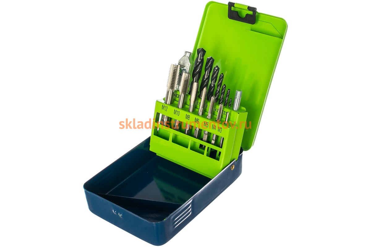 Набор сверл и метчиков 15шт СИБРТЕХ 77305 служит для создания отверстий различного диаметра в металлических заготовках с помощью сверл, а также нарезания внутренней метрической резьбы с мелким и стандартным шагом в отверстиях глухого и сквозного типа с помощью метчиков.