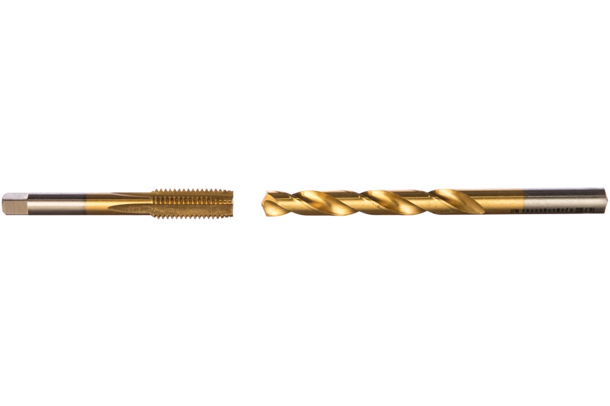 Набор для нарезания резьбы №37 метчик М12x1,75 + сверло d 10,3 мм ПрофОснастка Эксперт HSS M2 TIN 160201017 позволяет предварительно заготовить отверстие и нарезать внутреннюю резьбу. Покрытие нитрид титана делает инструмент более прочным. Изделие предназначается для работы с отверстиями в металле твердостью менее 1000 Мра.
