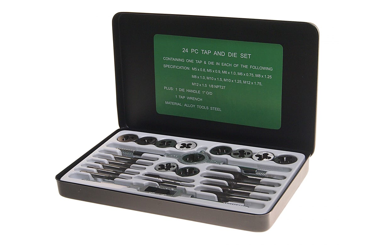 Метрический набор метчиков и плашек ROCKFORCE 24 предметов RF-M024-1 предназначены для профессиональной эксплуатации. Комплект используется для нарезания резьбы в отверстиях.