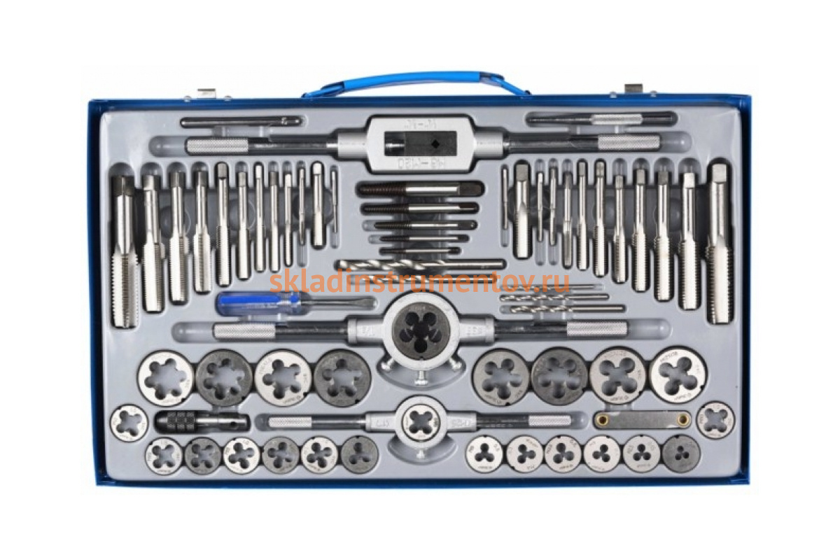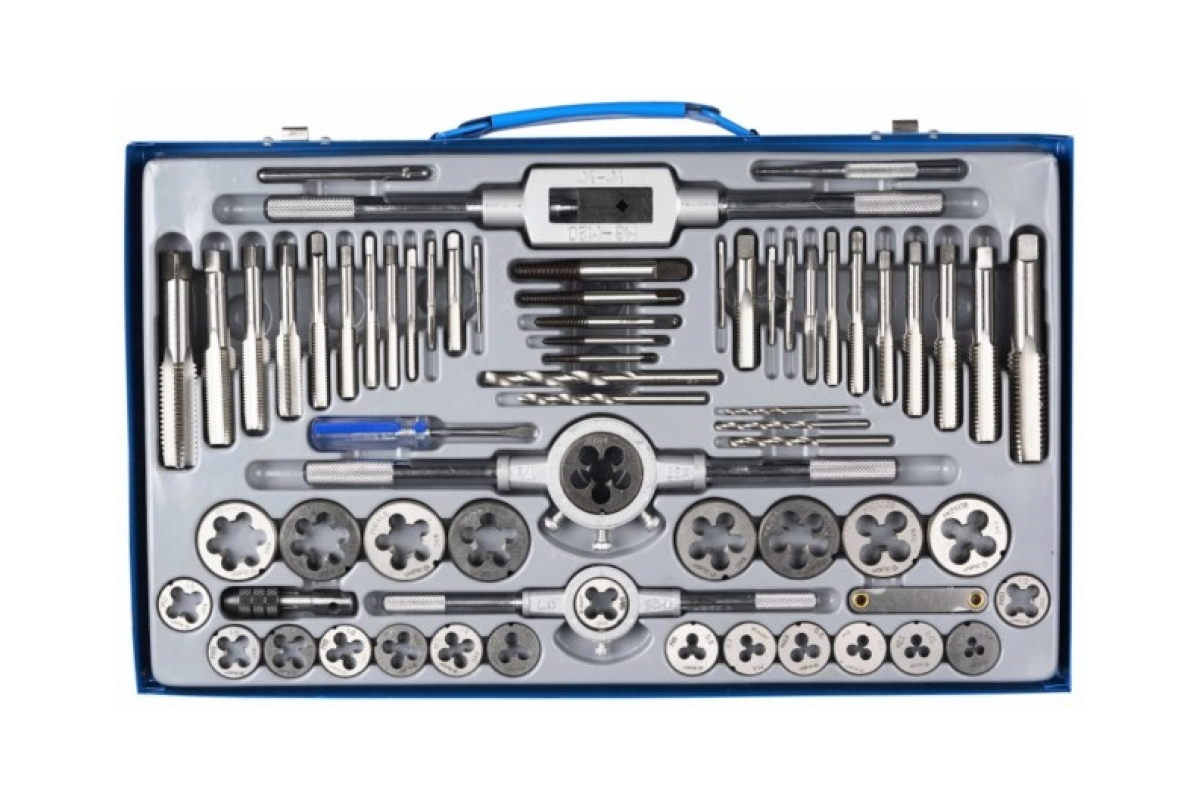 Набор с металлорежущим инструментом ЗУБР 28118-H65 - это 65 профессиональных инструментов, используемых при нарезании наружной и внутренней резьбы. С помощью плашек, метчиков, плашкодержателей, резьбомера и других инструментов можно выполнить резьбу на изделиях из стали, латуни, меди и прочих цветных металлов.