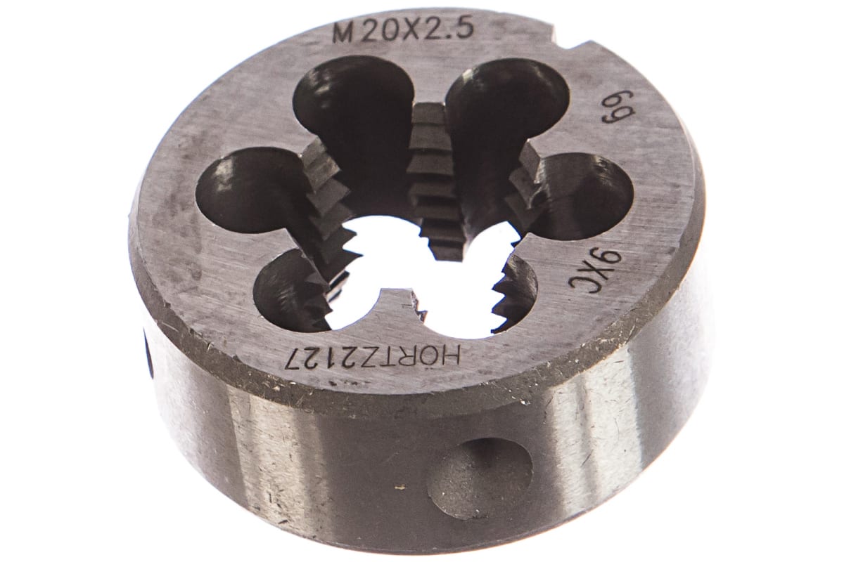 Плашка HORTZ М20x2.5 9ХС 204050 используется для нарезания внешней резьбы.