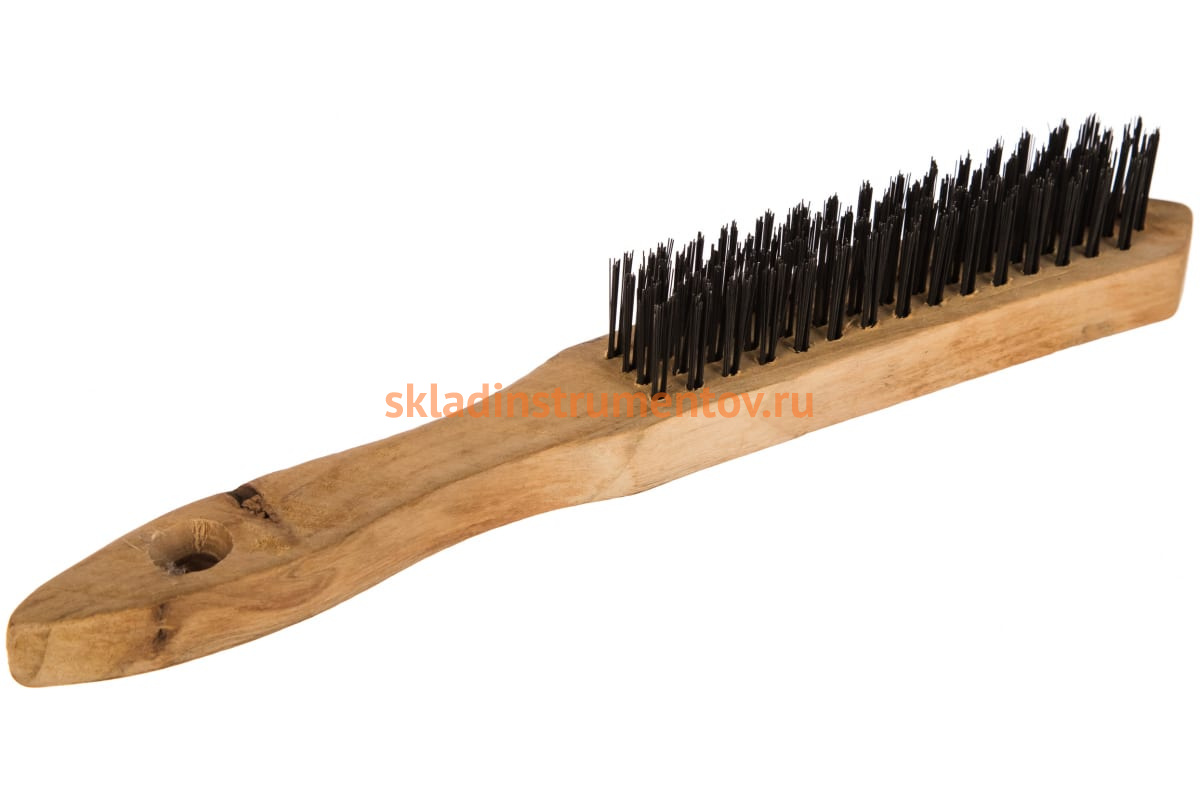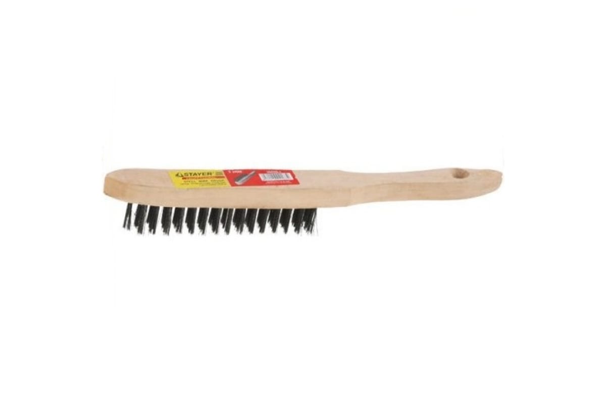 Проволочная стальная щетка, 4 ряда STAYER MASTER 35020-4 используется для грубой зачистки поверхностей. Имеет 4-рядную щетину и деревянную основу с удобной рукояткой. Предусмотрено отверстие на рукоятке - для подвешивания инструмента. Данное изделие поможет избавится даже от трудноудаляемых загрязнений.