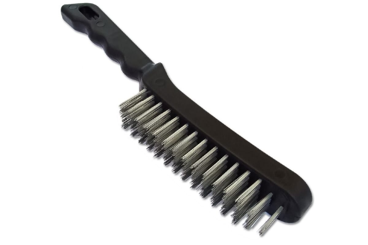 Щетка 5-рядная металлическая с пластмассовой ручкой SANTOOL 060103-005 имеет достаточную ширину для быстрой обработки металлических и деревянных поверхностей. Инструмент обладает высокой прочностью и жесткостью. Проволока для щетины надежно закреплена в основании.