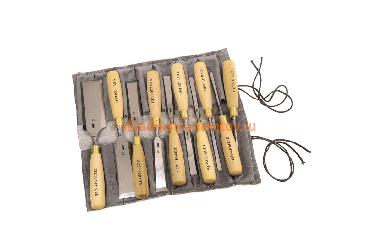 Набор стамесок 6,8,10,12,16,20,26,32,40,50 мм, прямая РК, 10 штук в сумке-скрутке Петроградъ М00012817 выполнены из хромомарганцевой стали. Полотно закалено до твердости 60 HRC и имеет постоянную толщину для удобства работы в труднодоступных местах. Рукоятка выполнена из граба.