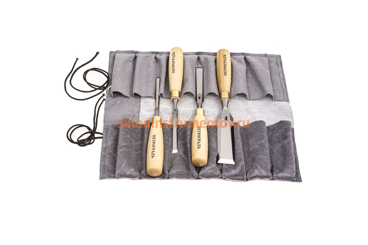 Набор стамесок 8,10,16,32мм (прямая РК, 4 штуки, в сумке-скрутке) Петроградъ М00012814 изготовлен из хром-марганцевой стали с закалкой полотна до 60 HRC. Удобство использования инструмента обеспечивается за счет рукояток из граба.