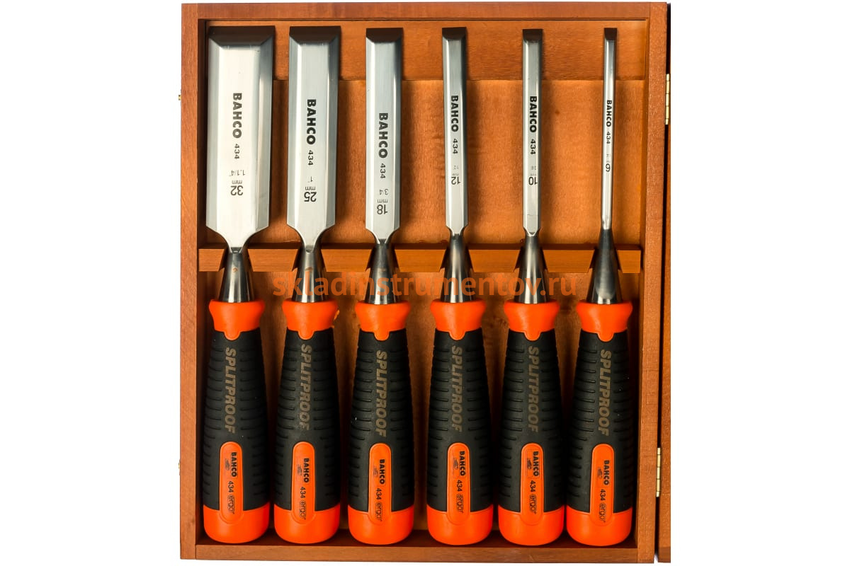 Набор стамесок 6 шт Bahco Profi-ergo 434-S6-EUR применяется для вытачивания и прорезания отверстий, фасок, углублений и пр. в деревянных заготовках. Набор сочетает в себе 6 стамесок разных размеров, что позволит работать с разными деталями. Инструменты удобны в работе благодаря эргономичным двухкомпонентным ручкам. Изделия легко хранить и транспортировать благодаря наличию ящика с отделениями для каждого компонента.
