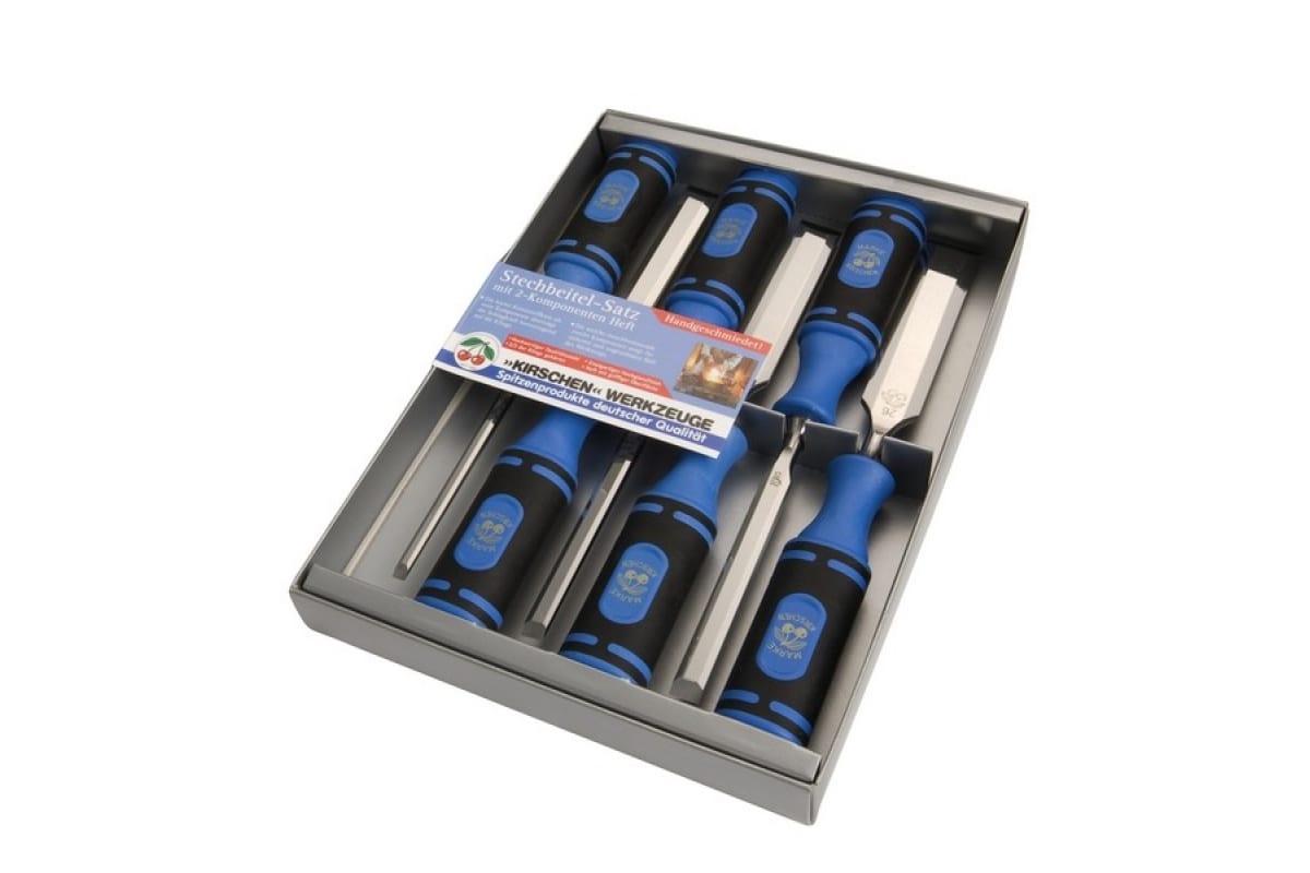 Набор стамесок KIRSCHEN KR-1118000 состоит из шести предметов, с различным по ширине лезвием, которое изготовлено из высокопрочной инструментальной стали. Каждый инструмент куется вручную, что обеспечивает продолжительный срок службы набора. Удобные деревянные рукоятки изготовлены из граба. Набор поставляется в специальной коробке, для удобного хранения и транспортировки.