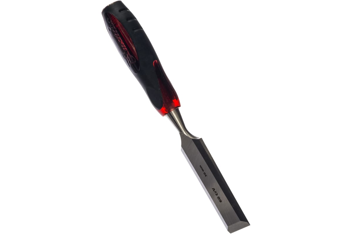 Долото-стамеска 30 мм MATRIX Тигровый глаз 24519 - это удобный и эффективный в работе ручной инструмент, который применяется в профессиональной сфере деятельности. Изделие может использоваться и как стамеска для выборки пазов и прорезинивания отверстий в деревянных заготовках, и как долото совместно со слесарным молотком. Инструмент имеет противоскользящую двухкомпонентную ручку, он не выскользнет из рук в процессе работы.