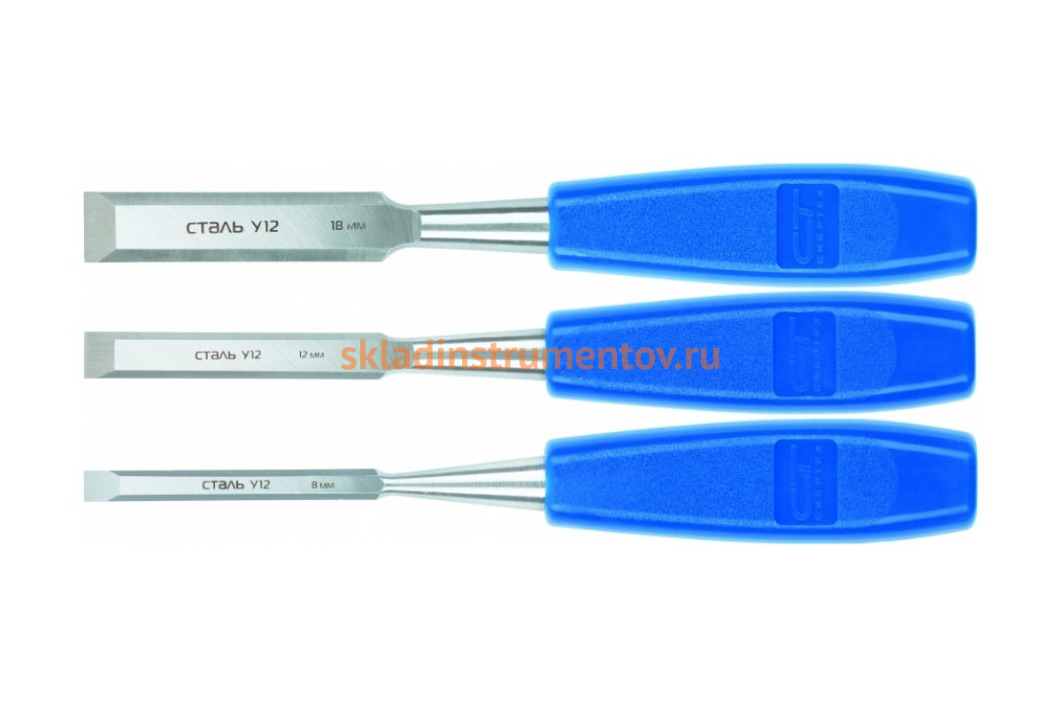 Набор плоских стамесок СИБРТЕХ 3 штуки 8-12-18 мм 24421 - это столярный инструмент, который применим для обработки деревянных заготовок, выборки и зачистки гнезд, пазов, шипов, а также снятия фасок. Полотно изделий набора изготовлено из углеродистой стали марки У12. Пластиковые ударопрочные рукоятки обеспечивают удобство работы. Угол заточки рабочей кромки полотна - 25°. Твердость рабочей части - 57 HRc.