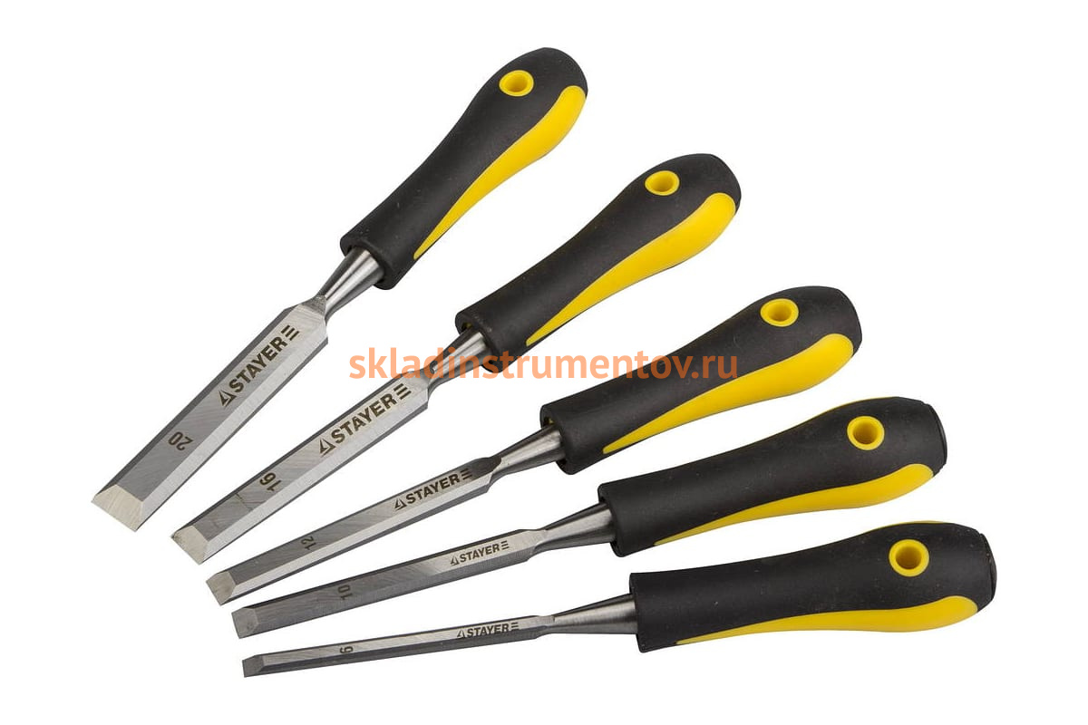 Набор стамесок STAYER PROFI 18205-H5 - комплект профессиональных столярных инструментов, которые используются для высокоточной обработки изделий из дерева различных пород. Полотна стамесок выполнены из инструментальной стали высокого качества и обеспечивают эффективный рез. Предусмотрены специальные предохранительные насадки на режущие кромки.