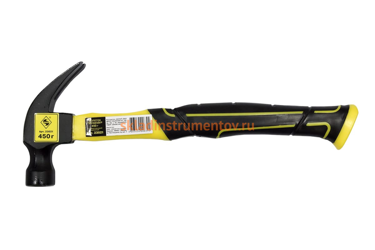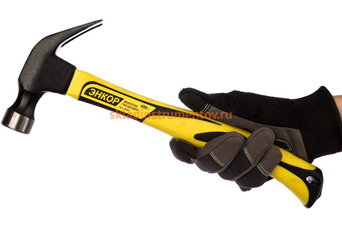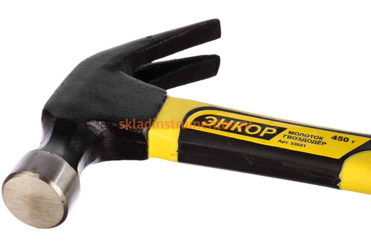 Молоток-гвоздодёр Энкор 1/6/36 23021 оснащен головкой, состоящей из круглого бойка и гвоздодера, что позволяет выполнять работы, такие как забивание и выдергивание гвоздей. Фиброглассовая ручка способствует надежному удержанию инструмента в руке.