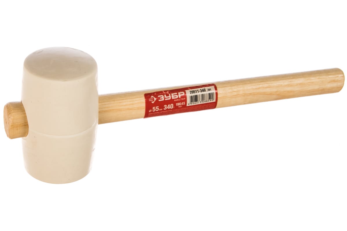 Резиновая киянка 0.34кг ЗУБР МАСТЕР 20511-340_z01 имеет боёк из белой резины и рукоятку из ясеня. Инструмент используется при столярных, сборочных работах и для материалов, чувствительных к давлению. Киянка прослужит долго благодаря улучшенному составу резинной смеси.
