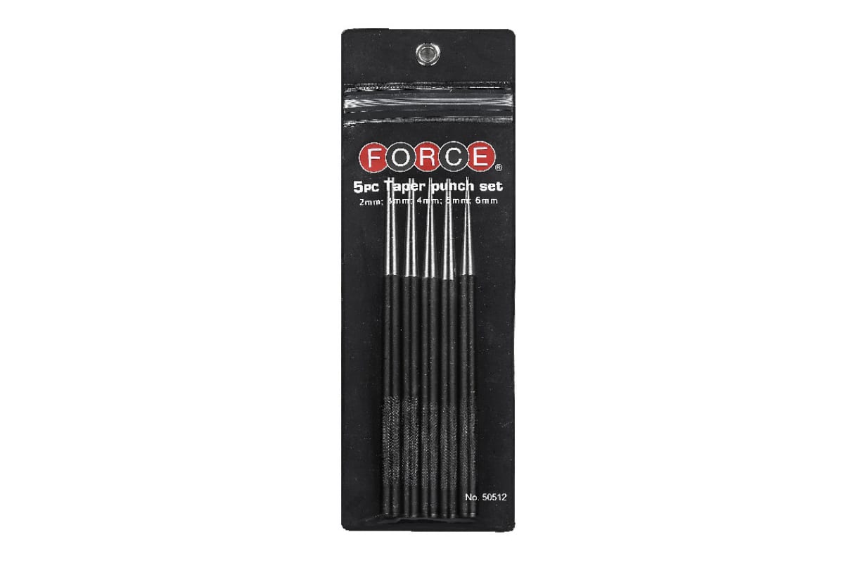 Набор бородков 5 предметов FORCE 50512 включает в себя инструменты с различным диаметром наконечника для работ с металлом.
