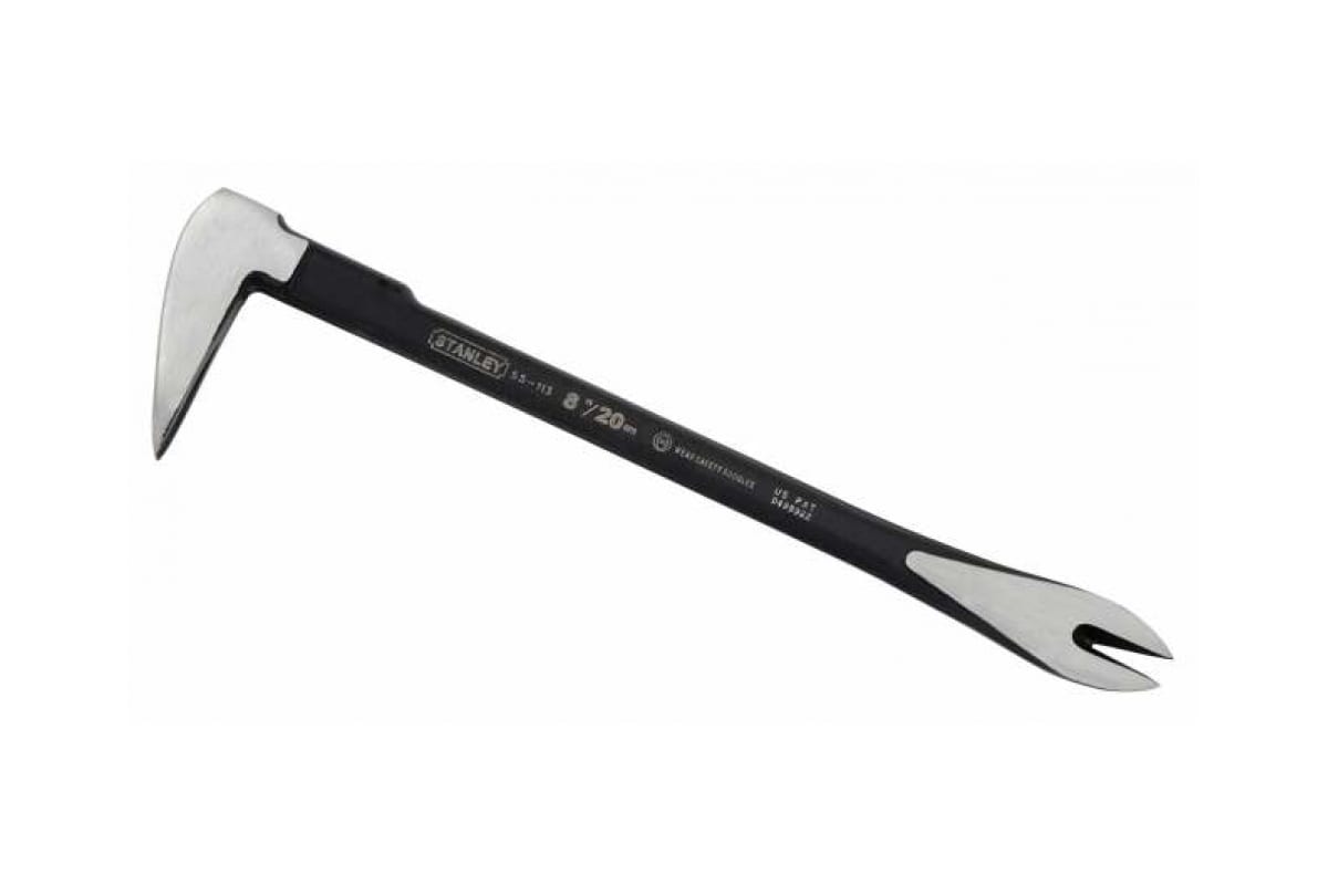 Кованый гвоздодер 25 см Stanley 0-55-114 предназначен для демонтажа гвоздей. Изготовлен из кованной высокоуглеродистой стали. Для большей прочности термообработан. Конструкция - двухсторонняя, специальная форма облегчает извлечение глубоко забитых гвоздей. Также приспособление может использоваться для подъема конструкций - в качестве рычага.. Поверхность рабочих частей полирована и оснащена фасками для более точных и быстрых работ.